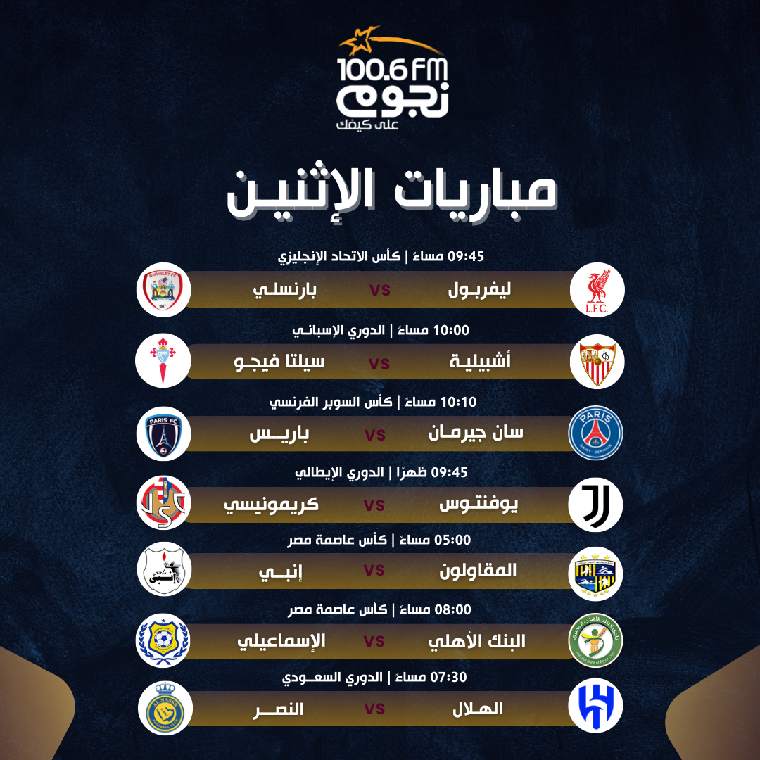 مباريات اليوم الإثنين