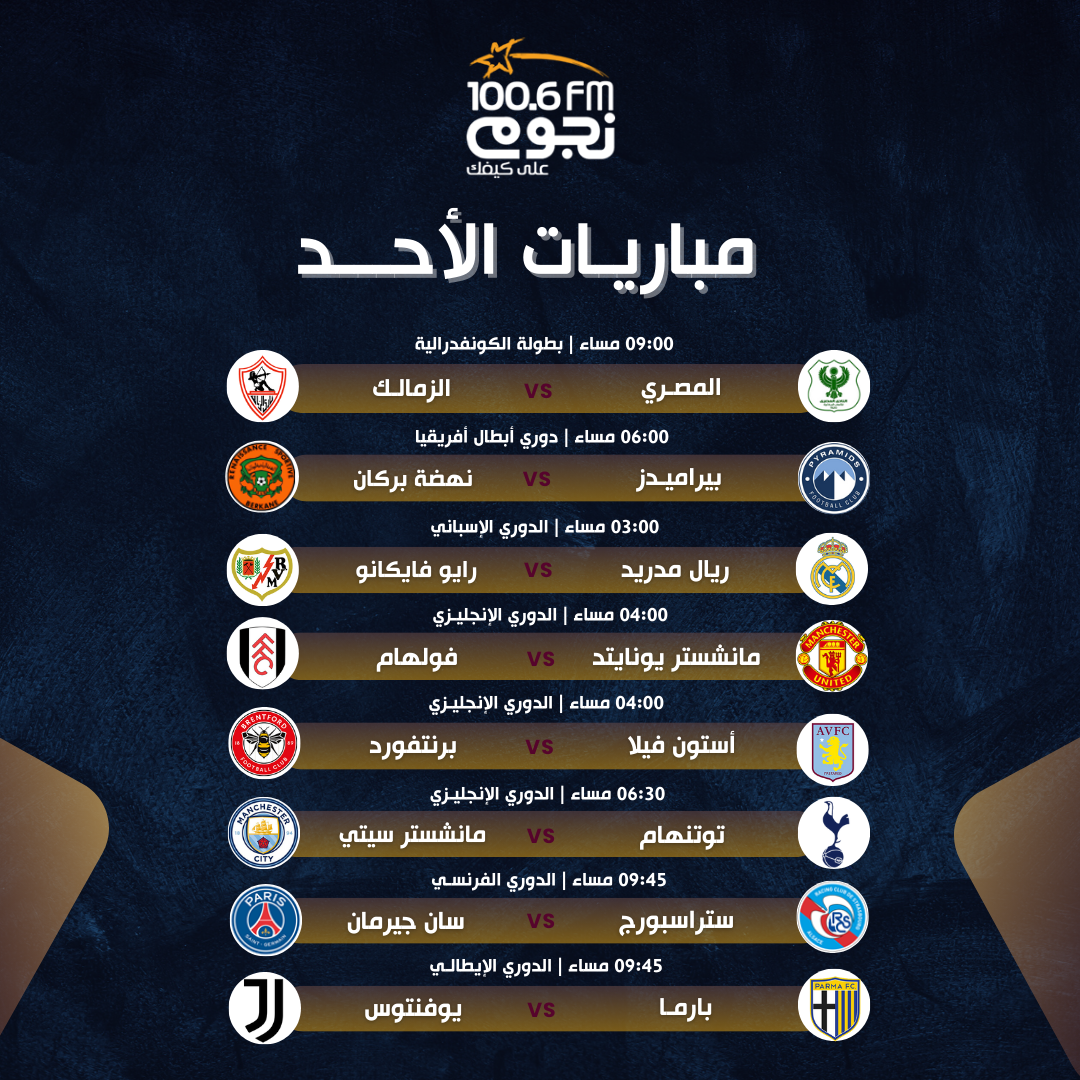 مباريات اليوم الأحد