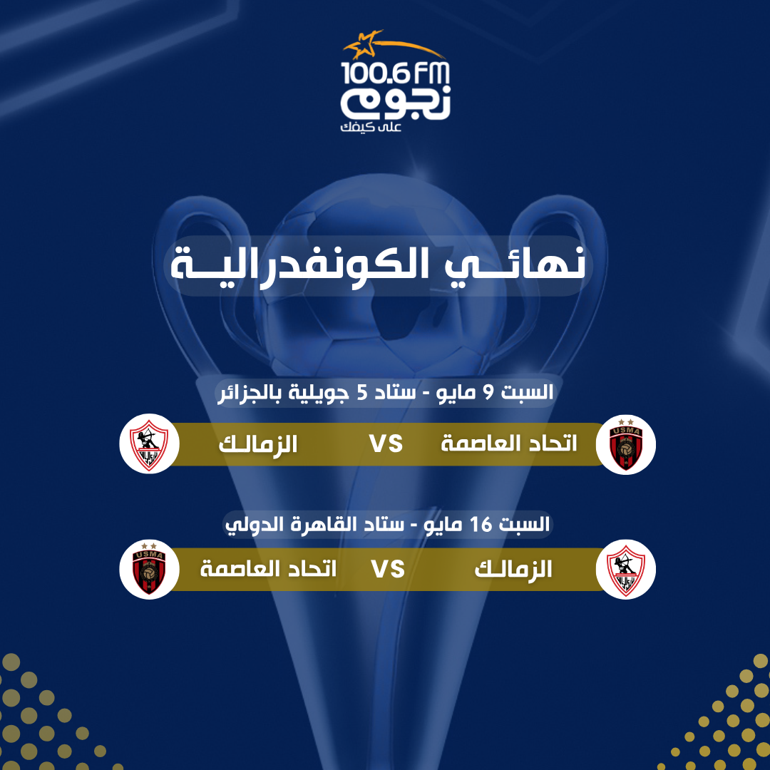 اتحاد العاصمة أمام الزمالك: تقام المباراة يوم السبت 9 مايو 2026، على ستاد 5 جويلية بالجزائر.